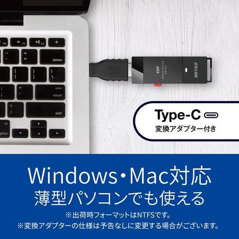 BUFFALO 外付けSSD ポータブル USB3.2 Gen2対応 スティック型 TV録画対応 Type-Cコネクタ付 500GB ブラック SSD-SCT500U3BA/D