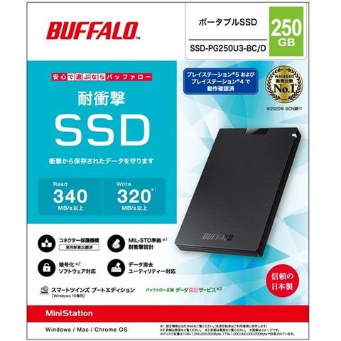 BUFFALO 外付けSSD ポータブル USB3.2 Gen1 Type-A 250GB ブラック SSD-PG250U3-BC/D