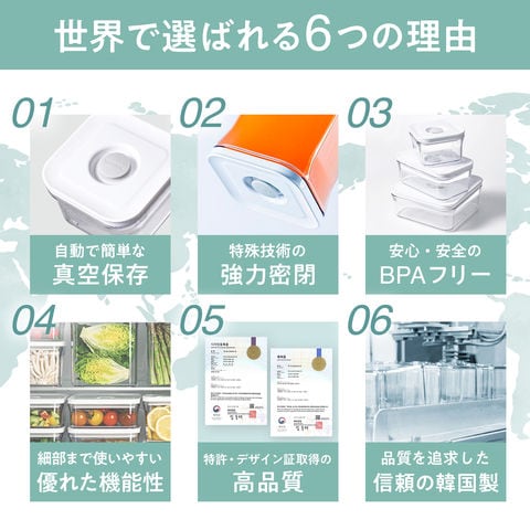 VAKUEN 真空保存容器 フライン限定セット 5P 食洗機 冷蔵庫 電子レンジ対応 韓国製 BPAフリー 耐熱 密閉 プレミアム バクエン
