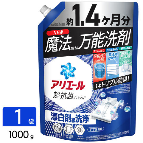 P&G アリエール 洗濯洗剤 液体 漂白剤レベル洗浄 エリそで&くすみ 清潔でさわやかな香り 詰め替え 超ジャンボ 1000g 4987176309167