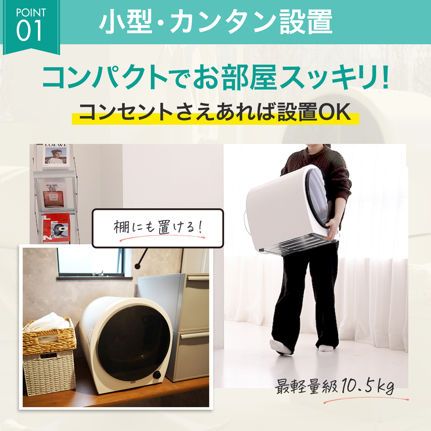 「省エネ・除菌」(低消費電力、UVランプ搭載)等、設置場所を選ばず快適な乾燥を実現する、次世代型の小型衣類乾燥機です