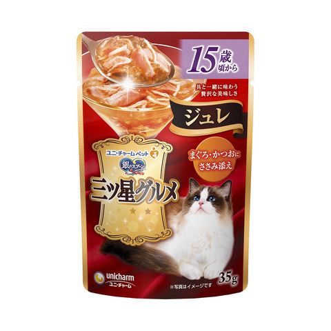 ユニチャーム 銀のスプーン三ツ星パウチジュレ15歳頃からまぐろ・かつおにささみ添え35g×160