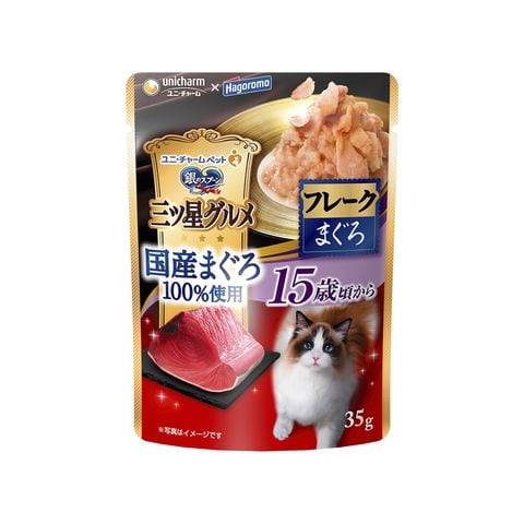 ユニチャーム 銀のスプーン三ツ星グルメパウチ国産プレミアム贅沢フレーク15歳が近づく頃から国産天然まぐろ35g×120