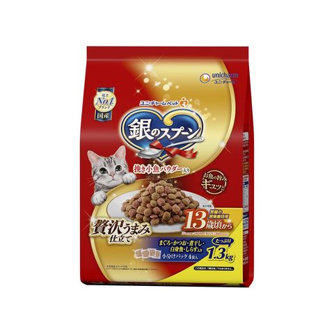 ユニチャーム 銀のスプーン贅沢うまみ仕立て腎臓の健康維持用13歳が近づく頃からお魚づくし1.3kg×6