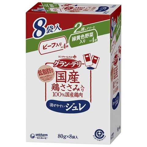 ユニチャーム グラン・デリ国産鶏ささみパウチジュレ成犬用ビーフ&野菜80g×8P×10袋