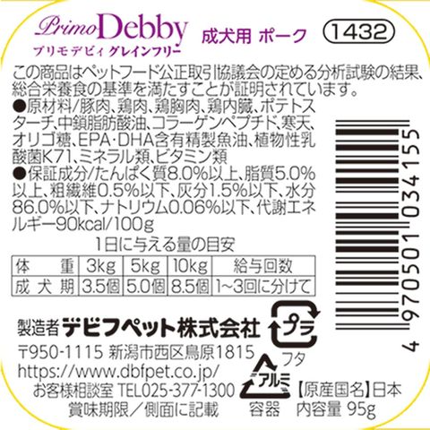 プリモデビィ グレインフリー 成犬用 ポーク 95g×24