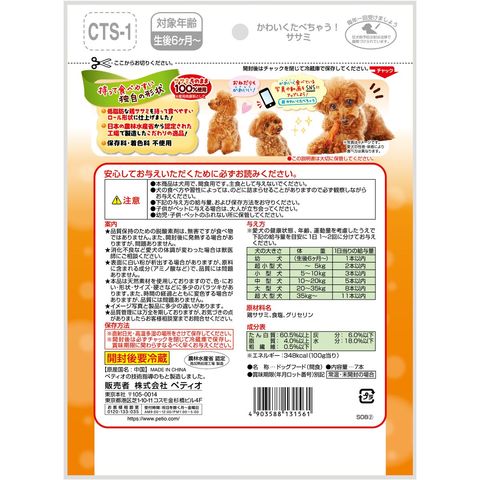 原材料:鶏ササミ、食塩、グリセリン