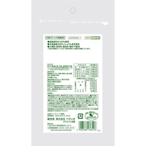 ●本商品は犬用で、間食用です。主食として与えないでください。
