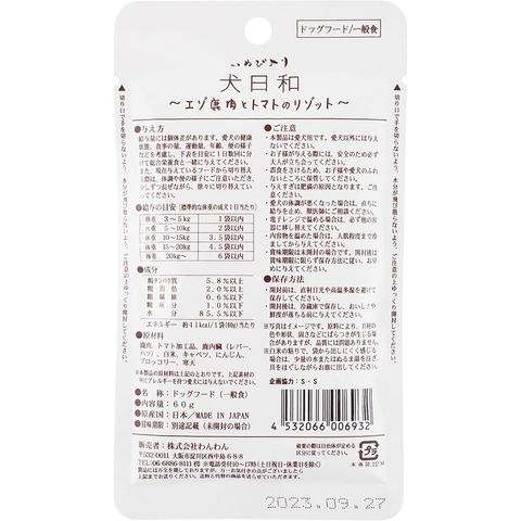 犬日和レトルト エゾ鹿肉トトマトノリゾット 60g×60