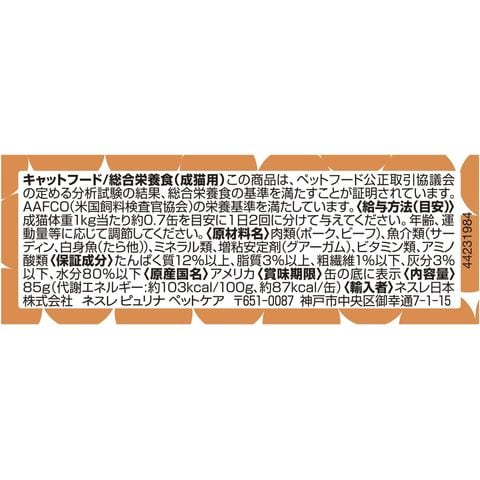使用方法・給与方法:成猫体重1kg当たり約0.7缶を目安に1日2回に分けて与えてください。