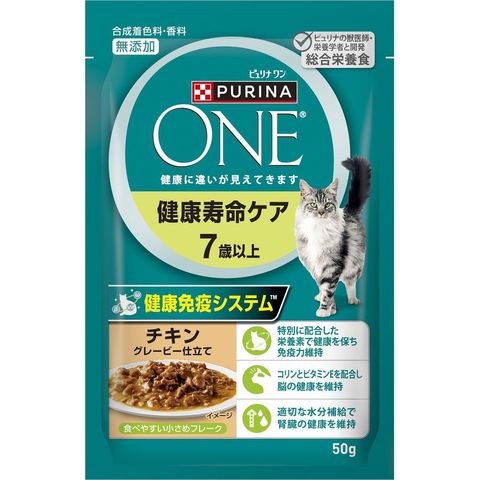 ネスレ日本 ピュリナワンキャット パウチ 健康寿命ケア 7歳以上 チキングレービー仕立て 50g×48