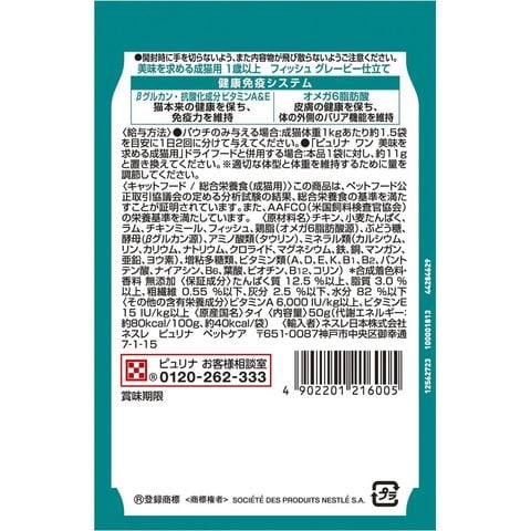 ネスレ日本 ピュリナワンキャット パウチ 美味を求める成猫用 1歳以上 フィッシュグレービー仕立て 50g×48