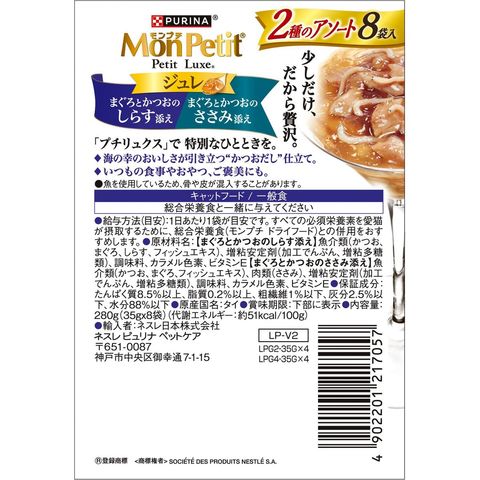 ネスレ日本 モンプチ プチリュクスパウチ ジュレ 2種のアソート まぐろとかつお しらす添え&ささみ添え 35g×8P×6