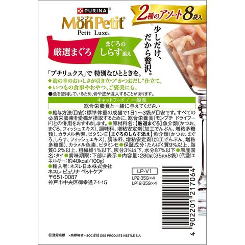 ネスレ日本 モンプチ プチリュクスパウチ 2種のアソート 厳選まぐろ&まぐろのしらす添え 35g×8P×6