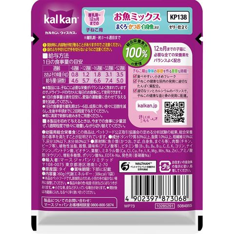 マースジャパンリミテッド カルカンパウチ 12ヵ月までの子ねこ用 お魚ミックス まぐろ・かつお・白身魚入り 60g×120