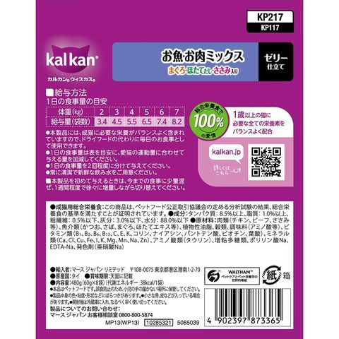 ブランドコンセプト:総合栄養食で100%の愛情アピールポイント:抜群のおいしさに進化!厳選されたまぐろ・ささみを、ほたてだしを含むカルカン特製だしで煮込み、ジューシーなゼリー仕立てにしました。