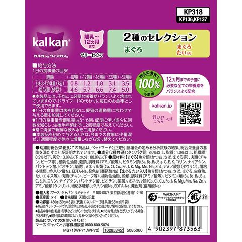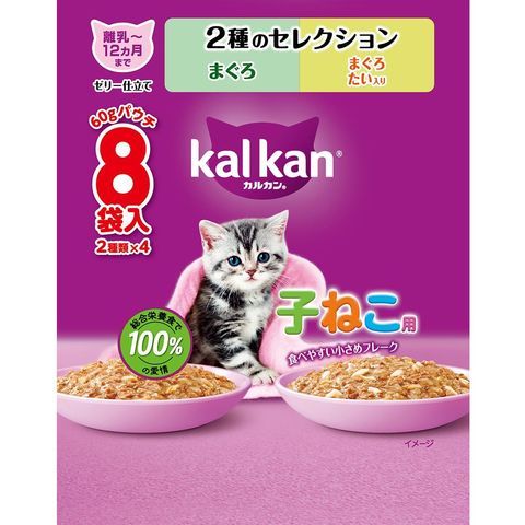マースジャパンリミテッド カルカンパウチ 12ヵ月までの子ねこ用 2種のセレクション まぐろ まぐろ たい入り 60g×8×20