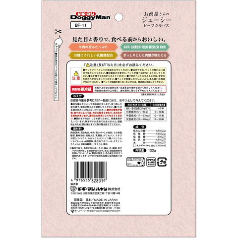 【1日の目安給与量】・幼犬 超小型成犬(5kg以下):~5本・小型成犬(5~11kg):5~10本・中型成犬(11~23kg):10~15本・大型成犬(23~40kg):15~20本使用上の注意:●ペットフードとしての用途をお守りください。