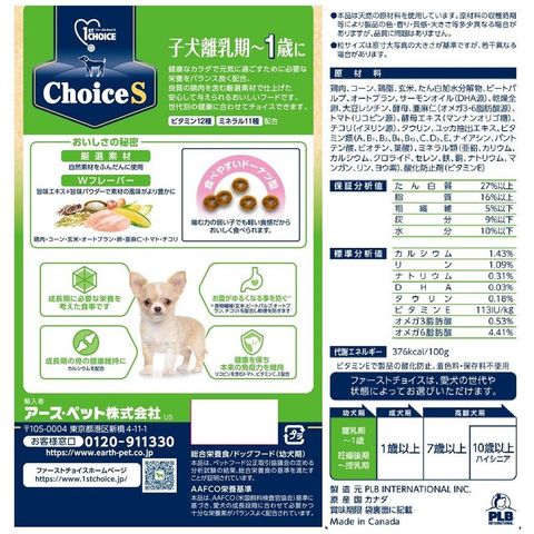 アース・ペット ファーストチョイス ChoiceS 子犬離乳期~1歳 2.4kg×4