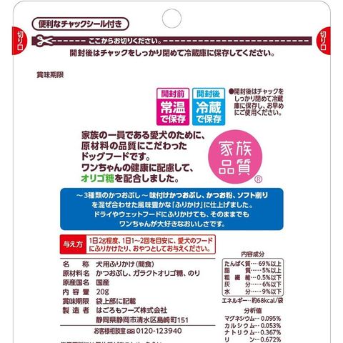 アピールポイント:風味豊かな3種類のかつお節を使用したわんちゃん用のふりかけです。