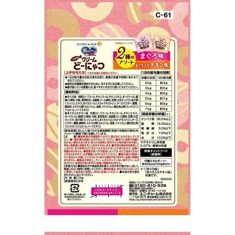 ユニ・チャーム 銀のスプーン おやつお魚味クリームどーにゃつ2種のアソートまぐろ&まぐろ入りチキン味 72g×24