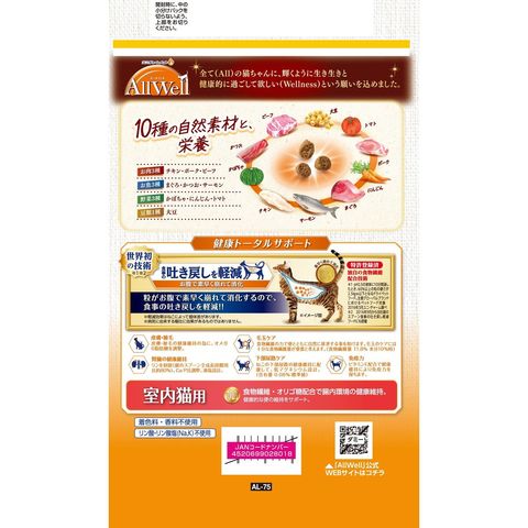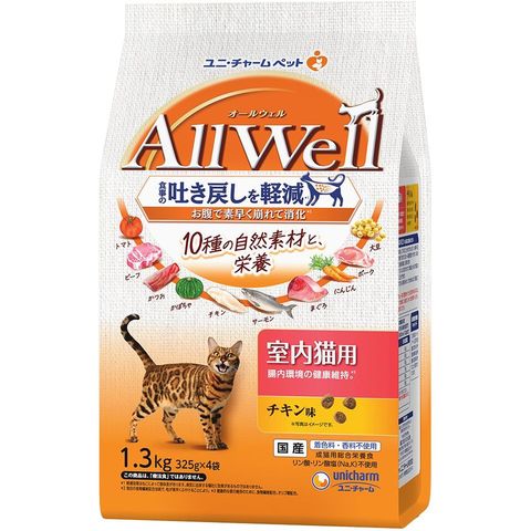 ユニ・チャーム AllWell10種の自然素材室内猫用チキン味 1.3kg×5