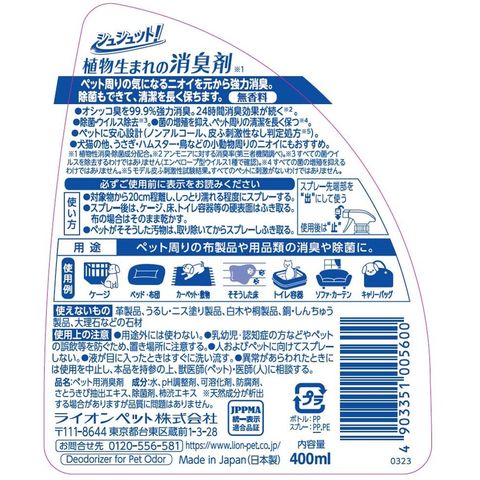 ライオンペット シュシュット!植物生まれの消臭剤 無香料400ml×20