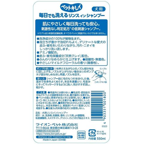 ライオンペット ペットキレイ 毎日でも洗えるリンスインシャンプー犬用ポンプ550ml×12