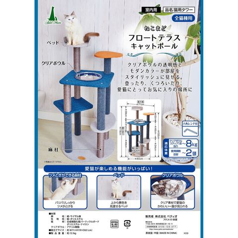 クリアボウルで下から覗き込める●ツメとぎができる麻柱●ベッド付き●クリアボウル付き使用上の注意:●重大な事故につながる恐れがありますので、人が登ったり踏み台にする等、本来の目的以外には使用しないでください。