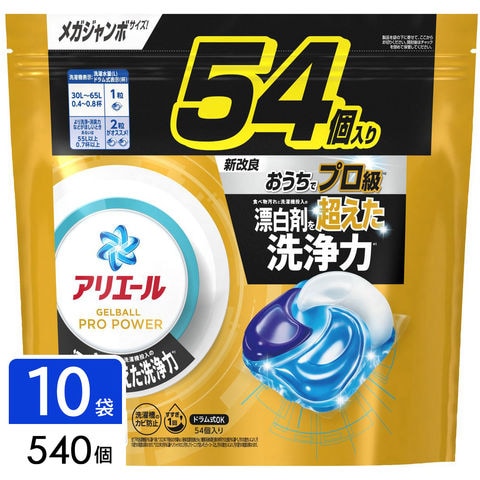 P&G アリエール ジェルボールプロ パワー 洗濯洗剤 詰め替え用 メガジャンボサイズ 540個(54個×5袋×2箱) 4987176234858