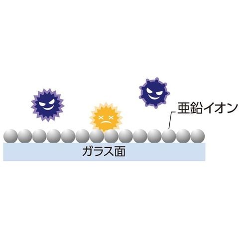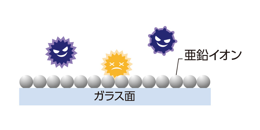 抗菌・抗ウイルス効果のある金属イオンをガラス表面にコーティングすることで、細菌の増殖を抑え、特定ウイルスの数を99%減少させます。