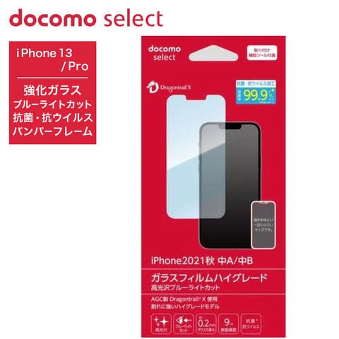 ドコモ純正 iPhone 13 13Pro ガラスフィルムハイグレード 高光沢BLC 液晶保護フィルム