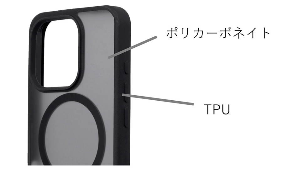側面部分に100%リサイクルのTPUを使用した、環境にやさしいケースです。