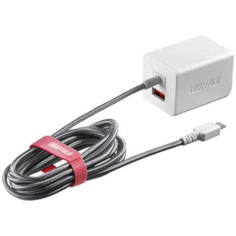 バッファロー(サプライ) 2.4A USB充電器 microケーブル一体 1.8m ホワイト BSMPA2401BC2WH
