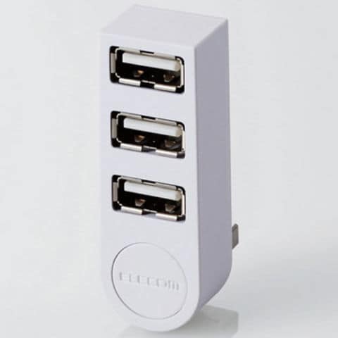 エレコム USB2.0ハブ/バスパワー/3ポート/直挿し/ホワイト U2H-TZ325BWH
