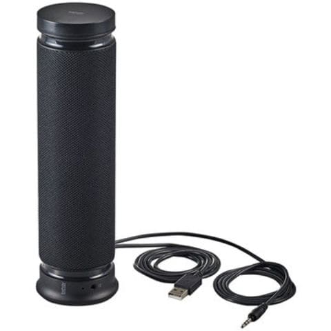 ■パソコンやスマートフォン/タブレット、テレビなど接続機器を問わず、さまざまなシーンで使用できるミニサウンドバースピーカー“behav(ビヘイブ)”です。 ■スピーカーユニット:φ43mmフルレンジ×2 ■スピーカー形式:密閉型(パッシブラジエーター方式) ■実用最大出力:5W(2.5W+2.5W) ■インピーダンス:4Ω ■周波数特性:140Hz~20kHz ■入力端子形状:電源入力:USB-Aオスコネクタ/信号入力:Φ3.5ステレオミニプラグ ■ケーブル長:USB(電源)ケーブル:約100cm/Φ3.5(オーディオ)ケーブル:約100cm ■出力形状:Φ3.5ステレオミニジャック(ヘッドホン用) ※4極プラグ非対応 ■通信方式:Bluetooth標準規格 Version5.0 ■出力:Bluetooth power class2 ■最大通信距離:見通し 約10m ■使用周波数帯域:2.4GHz帯 ■対応プロファイル:A2DP ■対応コーデック:SBC ■対応コンテンツ保護:SCMS-T方式 ■伝送帯域(A2DP):20Hz~20kHz(44.1kHzサンプリング時) ■最大登録可能台数:8台 ■マルチポイント:非対応 ■外形寸法:W:230×D:66×H:66mm(スタンド装着時85mm) ■質量:約370g ■カラー:ブラック ■保証期間:6カ月 ■法令対応:TELEC ■適合規格:BQB ■付属品:専用スタンド2個、取扱説明書