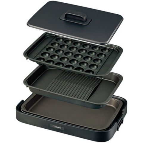●深さ3.5cm「深型プレート」 パエリアなどのこぼれやすい料理、パスタやすき焼きといった汁気の多い料理も楽しめます。 ●落ちた脂が流れやすい「傾斜溝つき焼肉プレート」 ●大きなたこ焼きが30個も焼ける 「区切り線つきたこ焼きプレート」 区切り線つきなので、穴からあふれさせた材料も丸めて作りやすい。 ●丈夫で長持ち。耐久性が高い「遠赤トリプルチタンセラミックコートの深型プレート」 ●かる~くセットできる「カチッと温度調節プラグ」