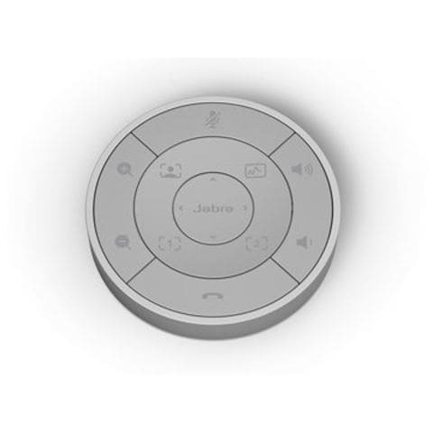 PanaCast50用リモコン。直感的に使えるわかりやすいデザイン。席を立つことなく、アクセスプリセット、PTZ (パン/チルト/ズーム)、音量調整などさまざまな操作が可能。▼カラー(グレー)▼関連製品(Jabra PanaCast50)