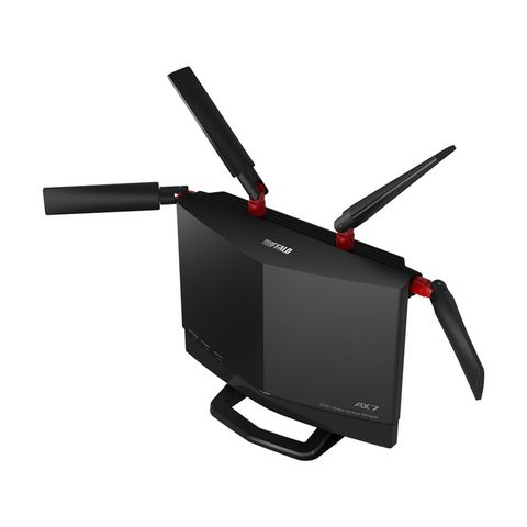 (1)動画やゲームに強く、10G回線を活用できる、WAN 10GbEポート搭載したハイパフォーマンスモデルWi-Fi 6(11ax)対応(2)7ストリーム(4×4 + 3×3)のパフォーマンスを最大化する「外付け3軸可変アンテナ」搭載