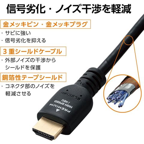 エレコム HDMIケーブル/Premium/スタンダード/1.0m/ブラック DH-HDPS14E10BK2