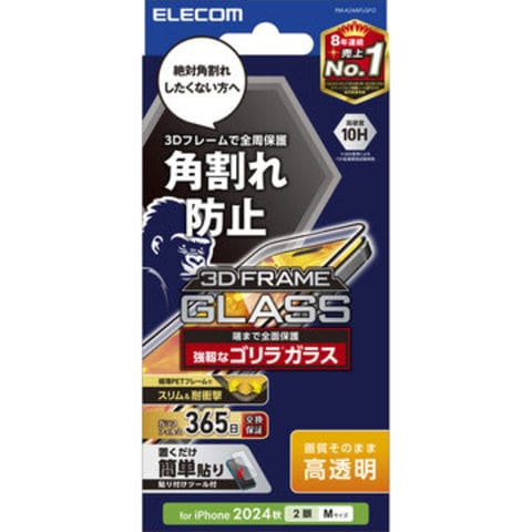 エレコム iPhone16/15ガラスフィルム/フレーム/ゴリラ/高透明 PM-A24AFLGFO