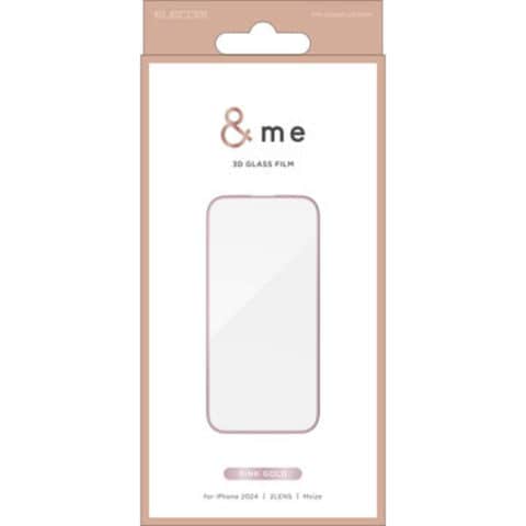 エレコム iPhone16/15ガラスフィルム/フレーム/&Me/ピンクゴールド PM-A24AFLGFPNM