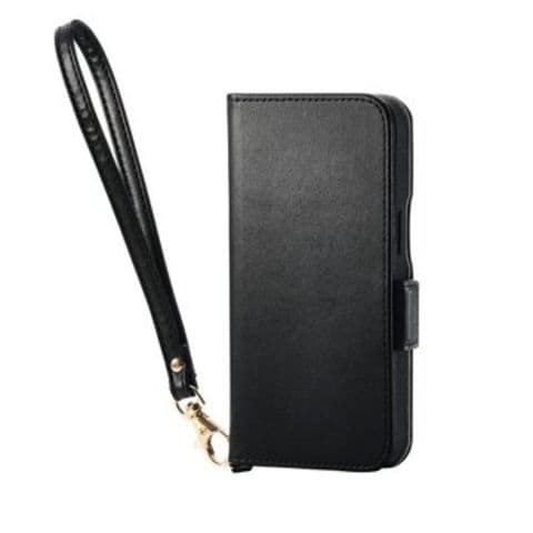 エレコム iPhone16e手帳型ケース/耐衝撃/ストラップ/ブラック PM-A25SPLFY4BK