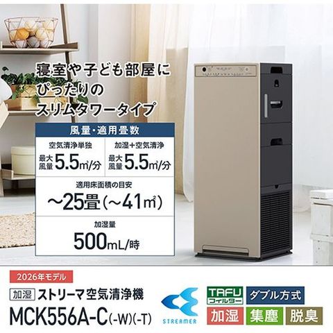 ストリーマー搭載。ウイルス対策、ダニなどのハウスダスト対策・カビ対策・花粉対策やニオイ対策としてお勧め。空気清浄機能はもちろん、加湿機能もあり。スタイリッシュでコンパクトなスリムタワー型。