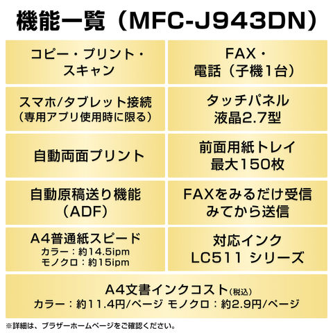 ブラザー工業 A4インクジェット複合機(FAX/子機1台/Wi-Fi) MFC-J943DN