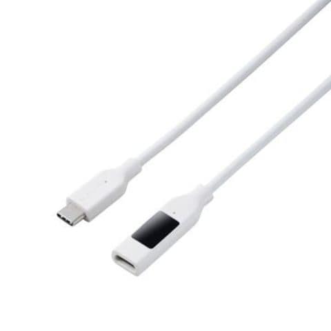 ■充電状況がひと目で分かる、電力ディスプレイ付きUSB Type-C延長ケーブルです。 ■片方はUSB Type-Cプラグ、もう片方にはUSB Type-Cポートを備え、お手持ちのケーブルと接続することで、ケーブルの長さが足りない時に「延長ケーブル」として使用できます。 ■コネクター部に搭載されたディスプレイで、接続した機器への充電電力値がリアルタイムで確認できます。正しく充電できているか視覚的に確認できるため安心です。 ■コネクター形状:USB Type-Cプラグ - USB Type-Cポート ■対応機種:USB Type-Cコネクター搭載のスマートフォン・パソコン・AC充電器・USBハブ・キーボードなど ■規格:Hi-Speed USB(USB2.0) ■対応転送速度:最大480Mbps ※理論値 ■USB Power Delivery対応:○ ■対応電圧/電流:最大48V/5A(240W) ■DisplayPort Alternate Mode対応:× ■プラグメッキ仕様:金メッキピン ■シールド方法:2重シールド ■ツイストペアケーブル(通信線):○ ■ケーブル長:約1m ※コネクター含まず ■ケーブル太さ:約3.8mm ■カラー:ホワイト ■パッケージ形態:紙箱 ■保証期間:1年間 ■環境配慮事項:EU RoHS指令適合、THINK ECOLOGYマーク