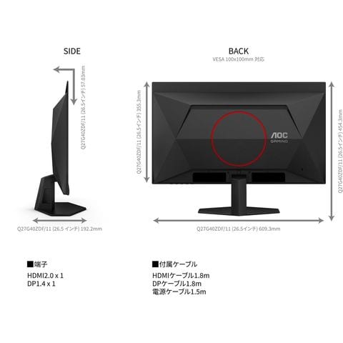 ●付属品:電源ケーブル1.5m、HDMIケーブル1.8m、Displayportケーブル1.8m、スタンド、ベース、保証書、ケーブル付属リスト