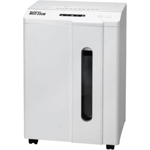 最大細断枚数25枚のハイパフォーマンスモデル。キャビネットタイプの大容量34.1Lモデル。屑箱は大型シュレダー同様取り出せます。