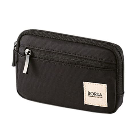 ■モバイルバッテリーやポケットWi-Fiルーター、ケーブルなどを収納できるマルチ収納ポーチ“BORSA”です。 ■薄くて軽量なスリムタイプです。 ■ポーチ内側に、ケーブルなどを分けて収納するのに便利なメッシュポケットが付いています。 ■ポーチ前面に、SDカードやUSBメモリなどの小物の収納に最適なファスナー付きの前面ポケットが付いています。 ■主素材タイプ:生地(ポリエステル) ■気室数:1気室 ■外形寸法:幅150mm×奥行25mm×高さ90mm ■内寸:幅130mm×奥行12mm×高さ75mm ■ポケット(前面):あり ■ポケット(気室内):メッシュポケット×1 ■カラー:ブラック ■材質:ポリエステル ■質量:約40g