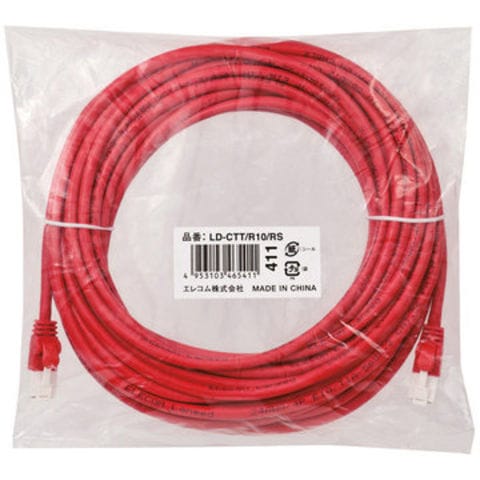 エレコム RoHS LANケーブル/CAT5E/爪折防止/10m/レッド LD-CTT/R10/RS